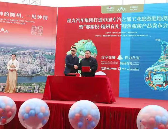在程力工業(yè)旅游產(chǎn)品發(fā)布會(huì)上,程力汽車(chē)集團(tuán)總經(jīng)理程阿羅(左)與鄂旅投總經(jīng)理王濤,簽署了文化旅游戰(zhàn)略合作框架協(xié)議,雙方?jīng)Q定利用各自的優(yōu)勢(shì)強(qiáng)強(qiáng)聯(lián)合,共同開(kāi)發(fā)工業(yè)旅游潛在市場(chǎng),為隨州的經(jīng)濟(jì)發(fā)展增添新的動(dòng)能。