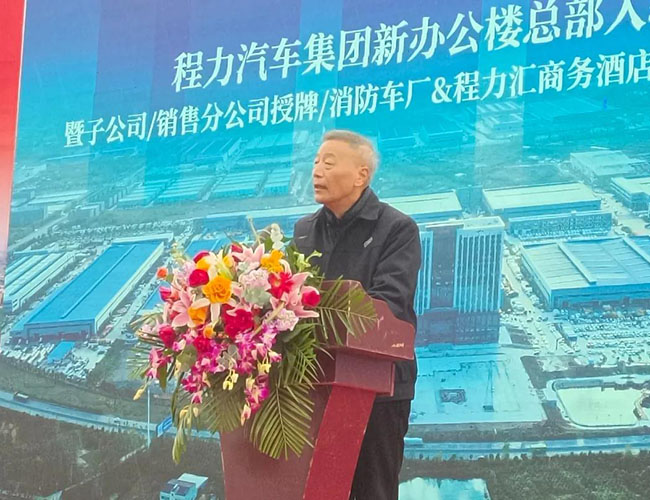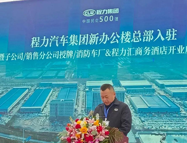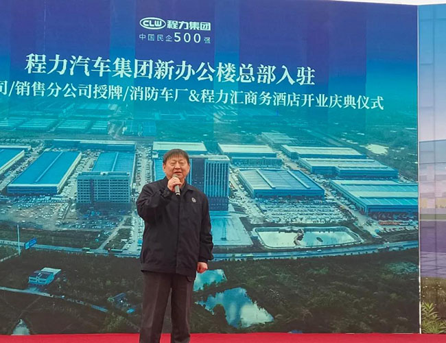 在程力集團(tuán)新廠辦公大樓總部入駐慶典會(huì)上,集團(tuán)總經(jīng)理程阿羅為程力消防車(chē)公司總經(jīng)理汪東洋,舉行了消防器材廠開(kāi)業(yè)授牌儀式,汪東洋總經(jīng)理作了表態(tài)和發(fā)言。