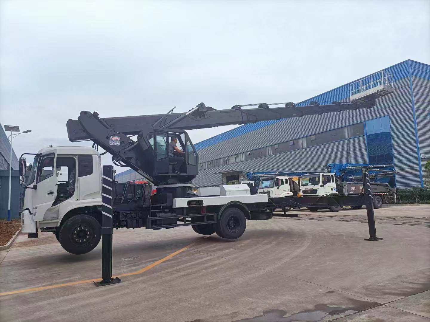 | 上裝配置 | 作業臂采用七節高強鋼同步伸縮作業,最大作業高度45米,前V后V形支腿,支腿可單獨調節,作業臂360度,平臺承重:200Kg 尺寸:1600x700x1000mm 應急泵,自動發動機點火熄火,手動 遙控 屏幕三方位操作; | ||